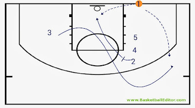 From the set shown, 2 sets a cross screen for 3 who comes hard off the screen. 1 hits 3 for a long distance shoot